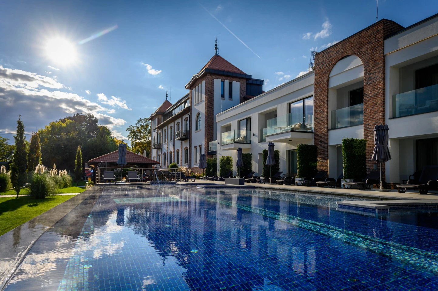 - Wellness részlegünk teljes kikapcsolódást biztosító fűtött bel,-és kültéri kiúszós medencéi pezsgőfürdővel és élményelemekkel.