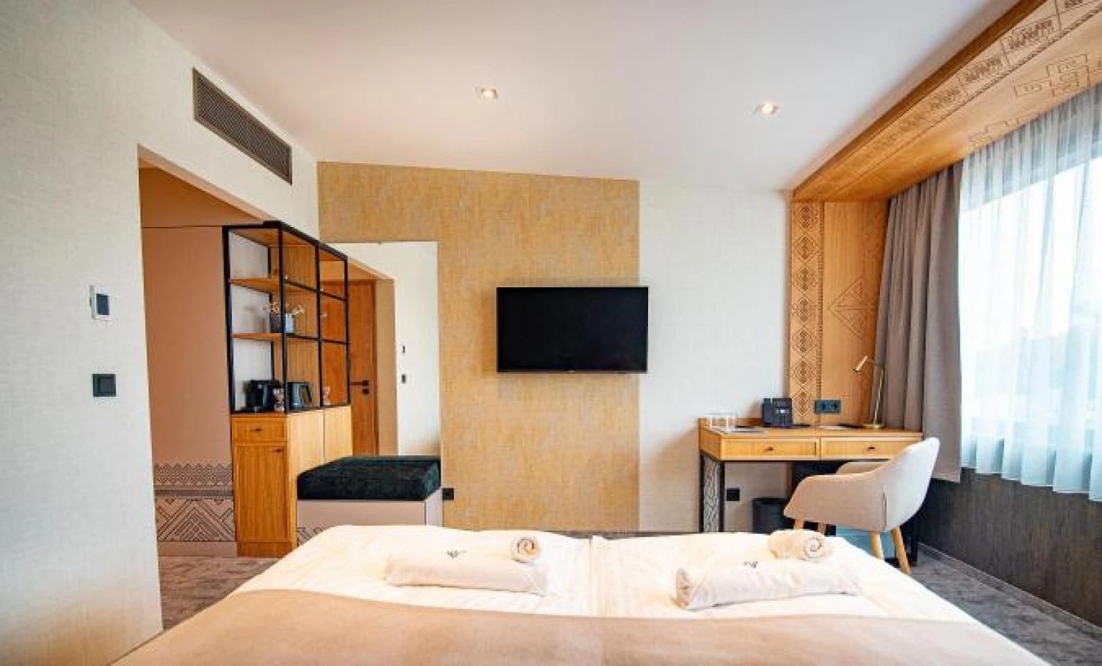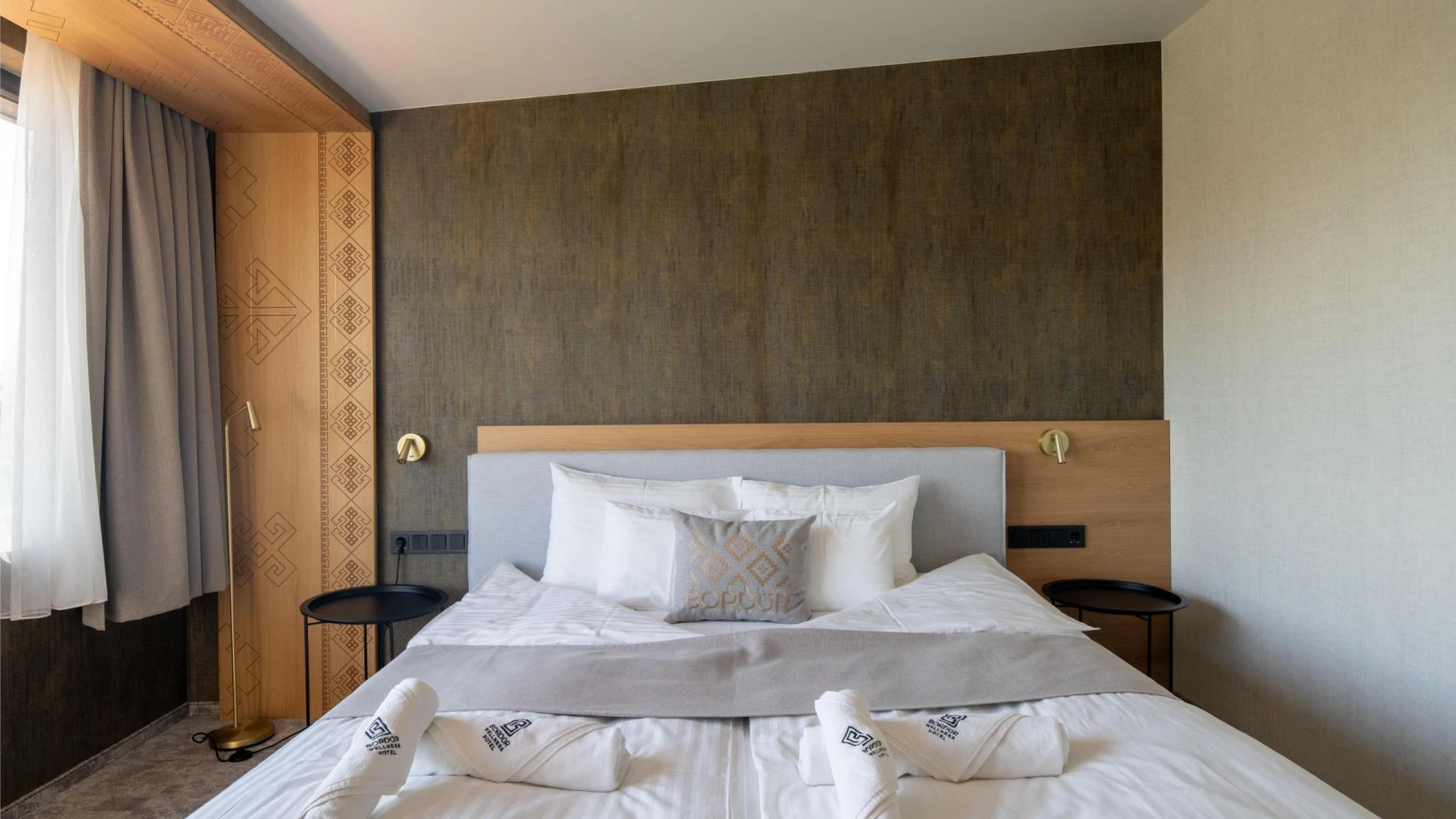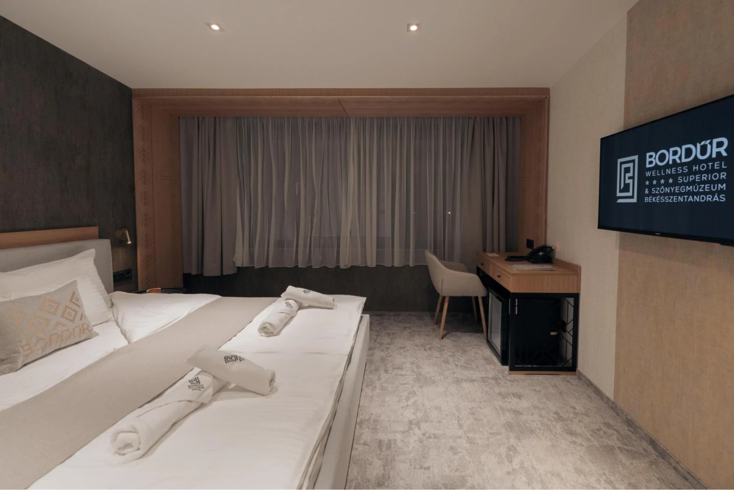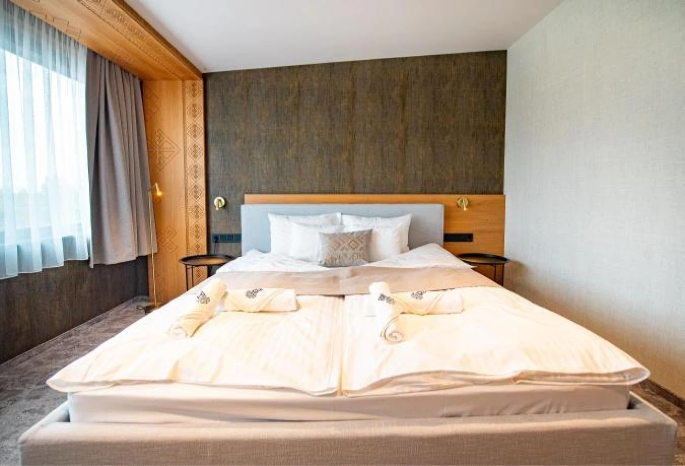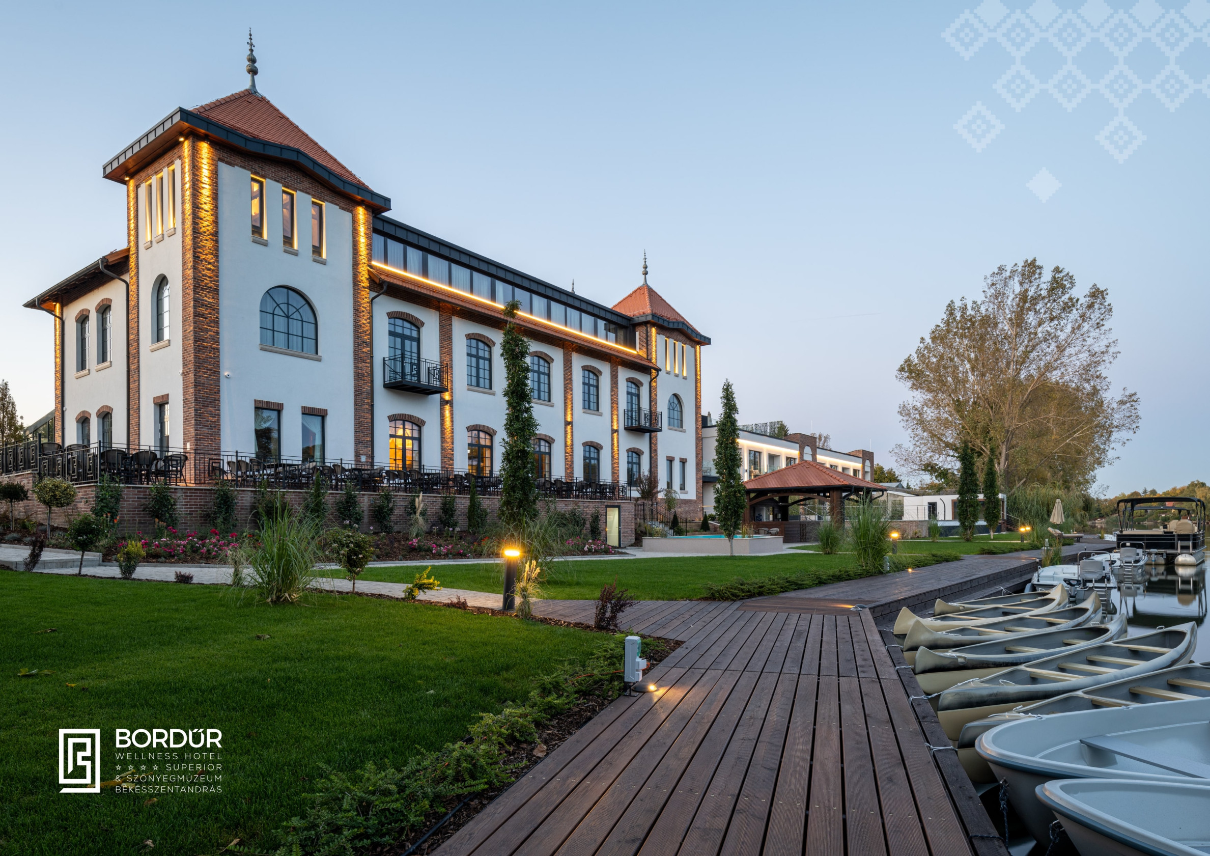 Located on the ground floor of the newly built wing, this exclusively furnished room with modern furnishings overlooks the pool nearby the Körös, the garden and the water.