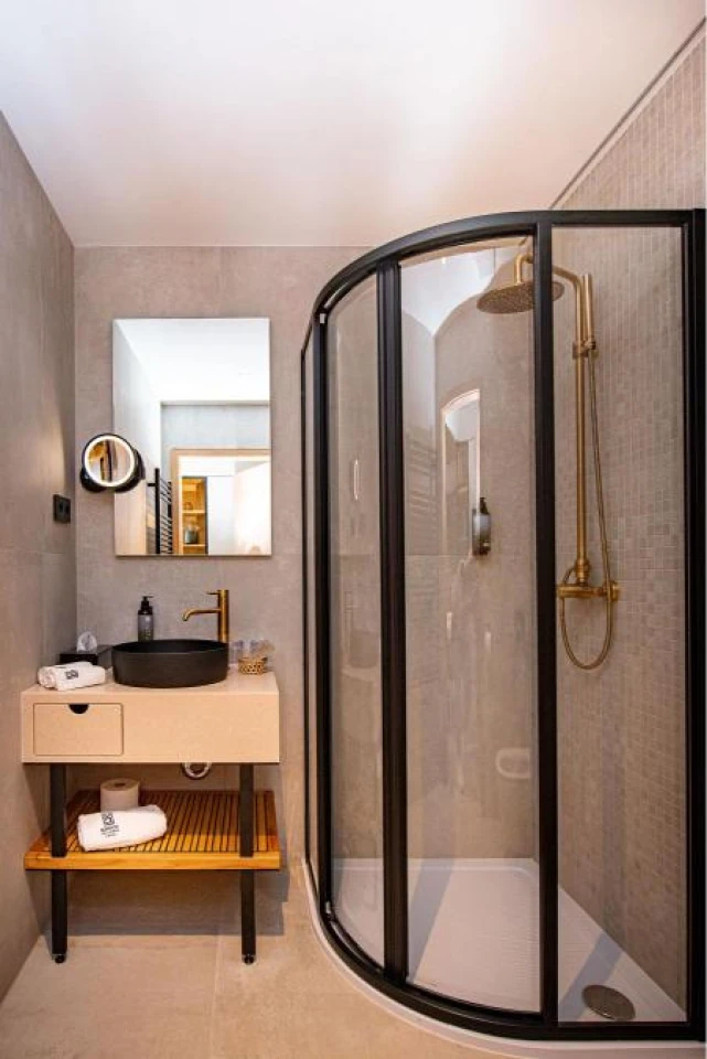 Located on the third floor of the main building, this exclusively furnished room with a modern bathroom with a built-in shower, overlooks the beautifully landscaped garden.