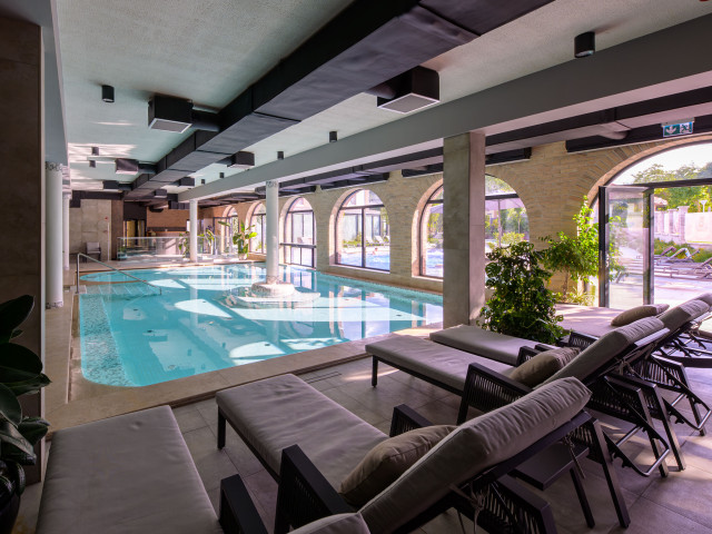 Wellness részlegünk teljes kikapcsolódást biztosító fűtött bel,-és kültéri kiúszós medencéi pezsgőfürdővel és élményelemekkel várják vendégeinket.