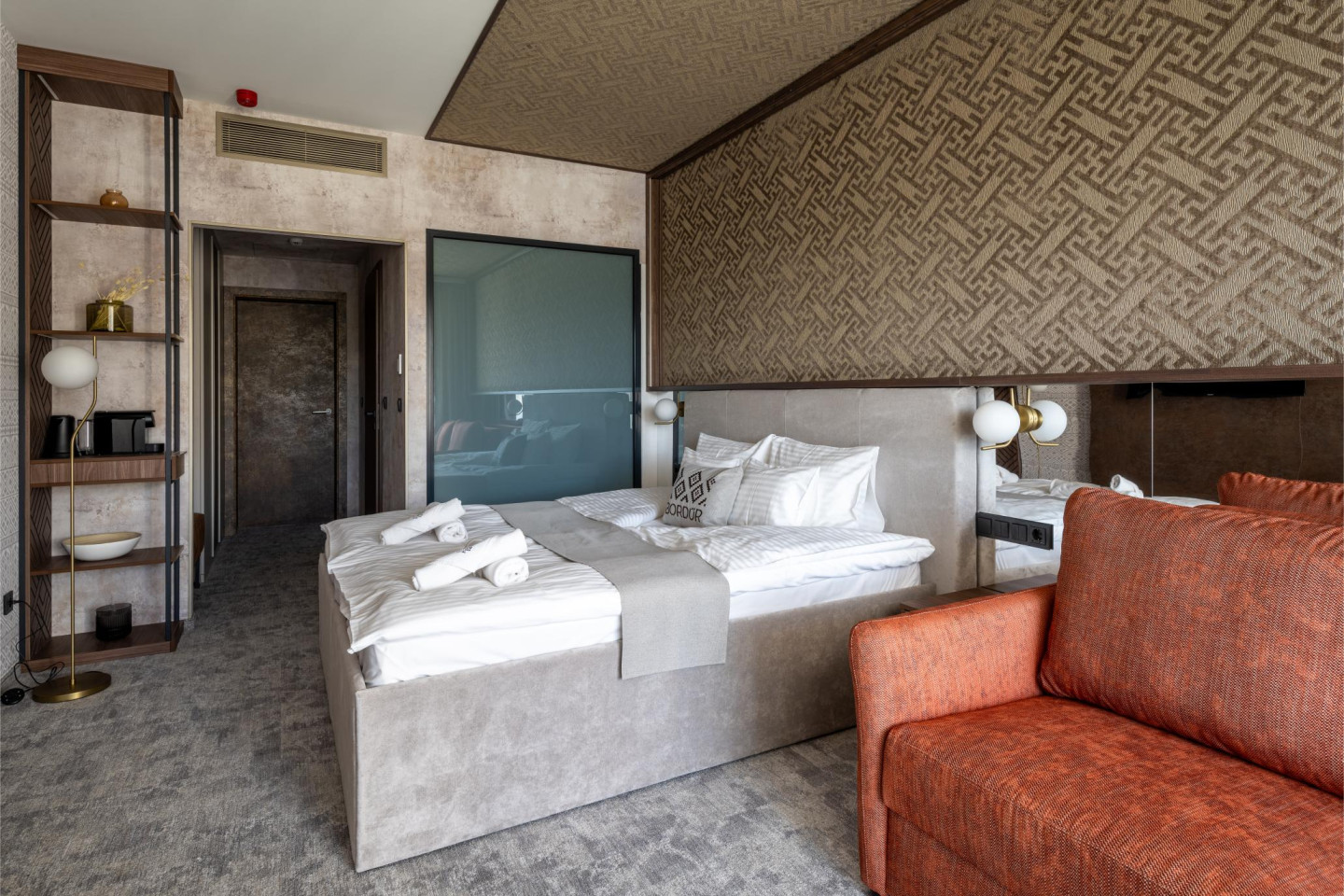 Tökéletes választás pároknak, akik romantikus kikapcsolódásra vágynak. A szálloda új építésű szárnyában található, exkluzívan bútorozott, modern berendezésű szoba épített zuhanykabinnal felszerelt fürdőszobával, amelyet a szobától egy elektronikusan átlátszóvá kapcsolható matt vagy átlátszó üvegfal választ el. A teraszok mindegyikén ülőbútor szolgálja a teljes kényelmet.